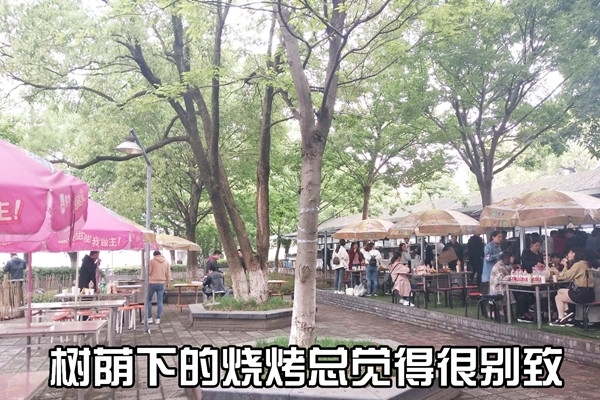 畢竟是老牌的燒烤圣地了,以前這樹下可都是泥濘地,現(xiàn)在都鋪上了磚,樹蔭下吃吃喝喝打打牌,這小日子,絕了。