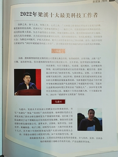 “2022年梁溪十大最美科技工作者”近日揭曉,創(chuàng)想儀器馬建州總經(jīng)理與常青,楊嘉輝,吳超,錢仕全,倪長輝,周文宇,蔣磊,楊賢,馬騰飛等10人,都是來自科研生產(chǎn)一線的科技工作者,榮獲此稱號。