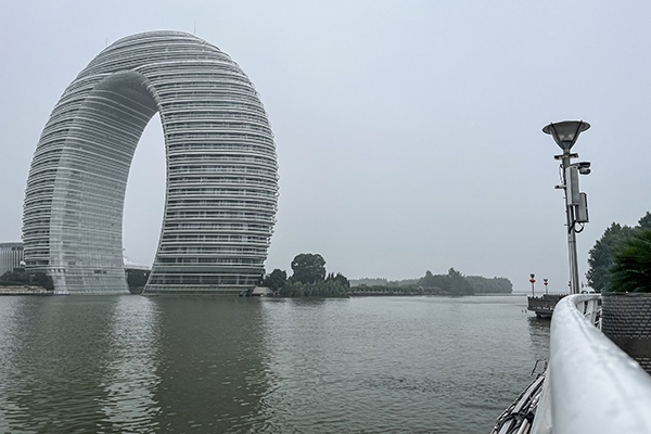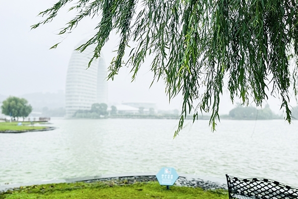 次日,來到月亮廣場轉一轉,有道是上車睡覺,下車拍照,車上補的是前日的疲勞,打卡拍的是湖邊的錦繡風光,卻不知有沒有看到那著名的“馬桶圈”,月亮酒店。