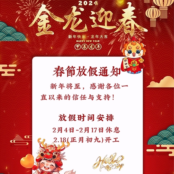 龍年大吉 GLMY創想儀器2024年春節放假通知