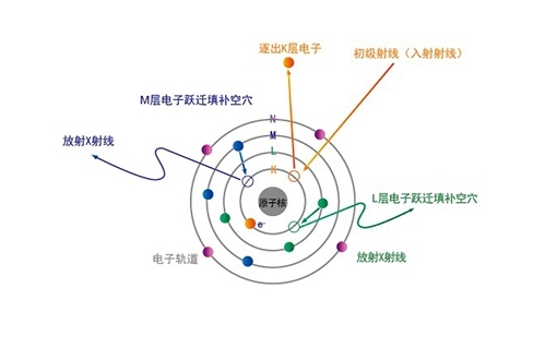 如果要得到某元素的特征X射線(xiàn),需要對(duì)元素原子內(nèi)層電子進(jìn)行激發(fā),使得內(nèi)層電子獲得一定能量,能夠脫離原子核的束縛,從而在內(nèi)層軌道形成電子空穴,當(dāng)較高能級(jí)電子填補(bǔ)這一空穴時(shí),才會(huì)發(fā)射一定能量的特征X射線(xiàn),這個(gè)過(guò)程就是X射線(xiàn)的激發(fā),也就是X射線(xiàn)熒光的基本原理。