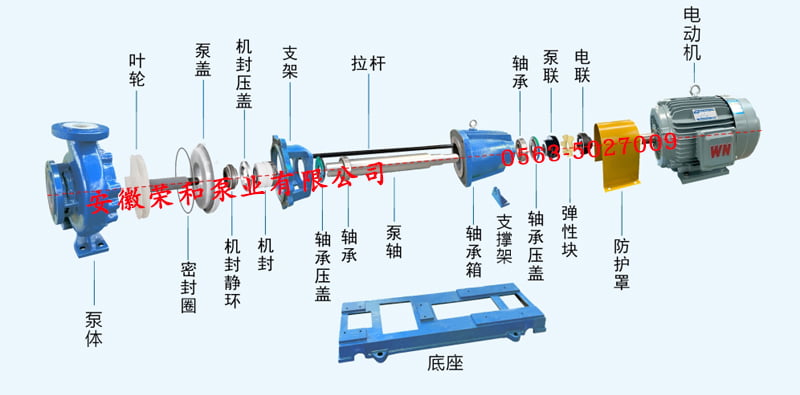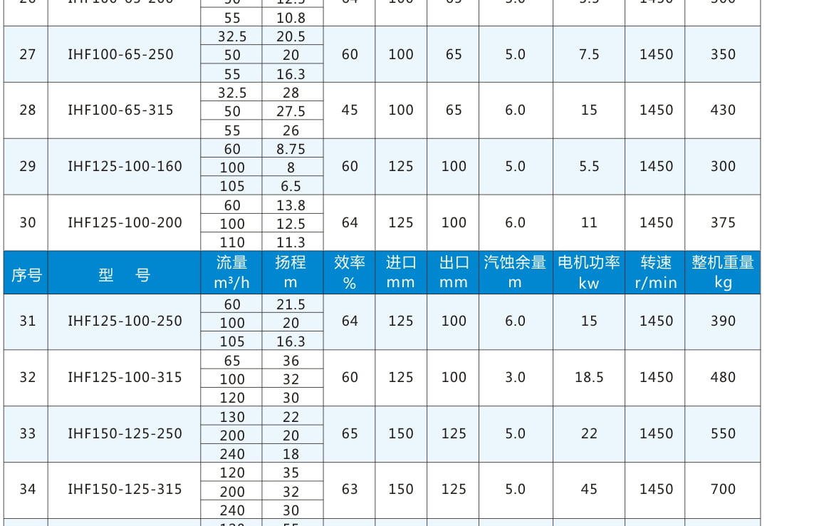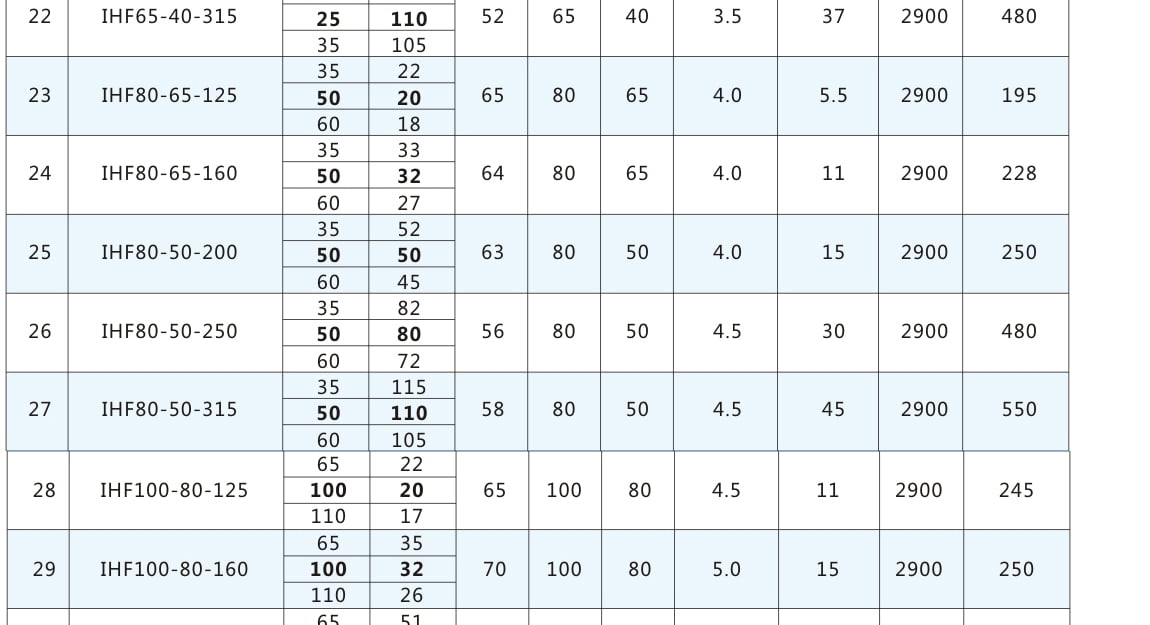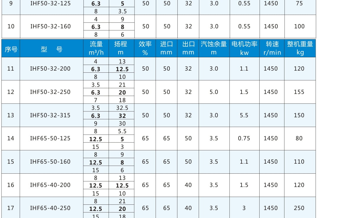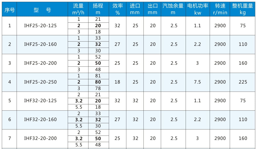 IHF:氟塑料合金離心泵代號丨 80:進口直徑80mm 65:出口直徑65mm 160:葉輪名義直徑160mm