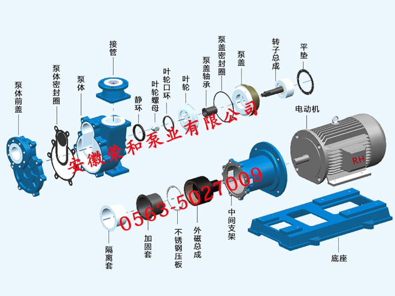 設計特點:尤其適用于抽吸低位槽酸堿、易燃易爆、易揮發類化學流體。采用磁力驅動,取消軸封,使用靜密封結構,利用磁力耦合間接傳動,完全無滴漏。內外磁均采用稀土磁鐵,內磁使用轉子總成形式,使泵的磁扭矩更強勁。加固套采用聚醚醚酮、碳纖維等非金屬材料制造,杜絕了磁渦流發熱帶來的隔離套損壞。