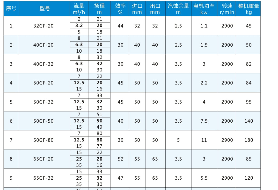 GF:氟塑料合金管道泵代號丨 80:進口直徑80mm 32:揚程32m